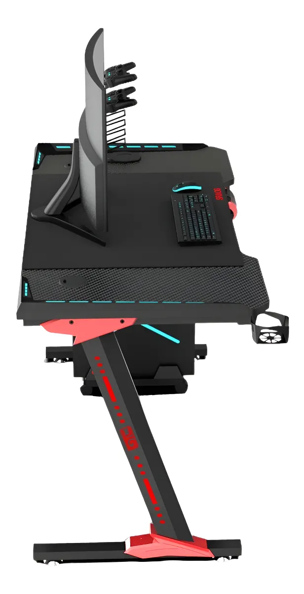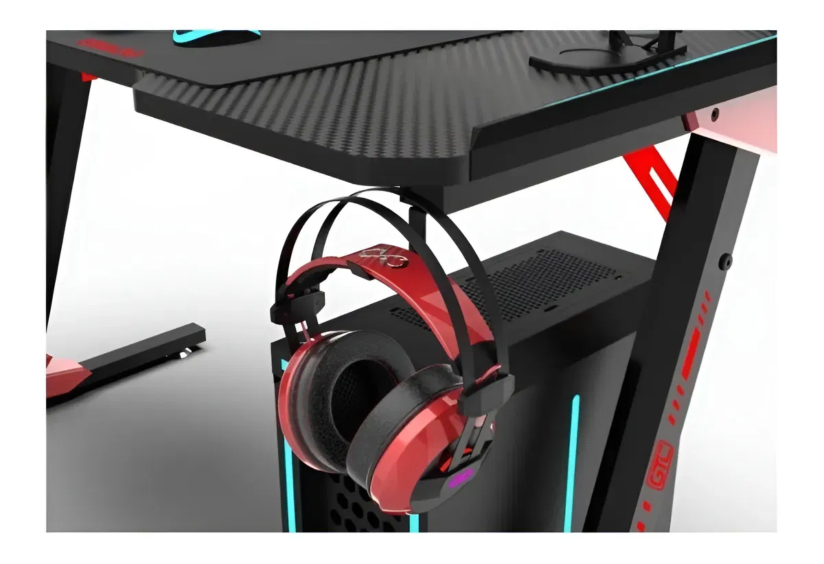 ¡Programá tu zona de juego! Resistente y espacioso, el escritorio GTC es perfecto para quienes buscan un mueble amplio que soporte el peso de consolas, televisores, grandes pantallas y otros dispositivos requeridos para jugar largas horas. Creá el ambiente idóneo, y pasá al siguiente nivel. • Apoya vasos • Gancho porta auriculares • Superficie antideslizante • Escritorio tipo Z • Tamaño: 120x60x73 cm • Patas de acero • Tablero Melamina Metal 1 Tira de luces led 6 tuercas 8mm 2 tornillos 8x20 mm 2 tornillos 6x16 mm 4 tornillos M4 x40mm 6 tornillos M4 x16mm 4 bases para soportes 6 tornillos 8x50 mm 4 arandelas 7,5 mm