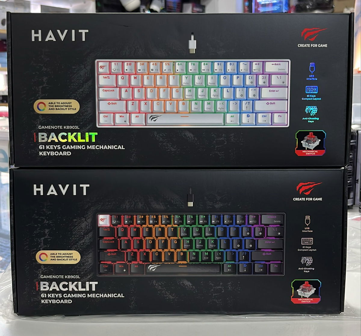 HAVIT Teclado Mecanico Gamer 60% Inalambrico Blanco/Negro