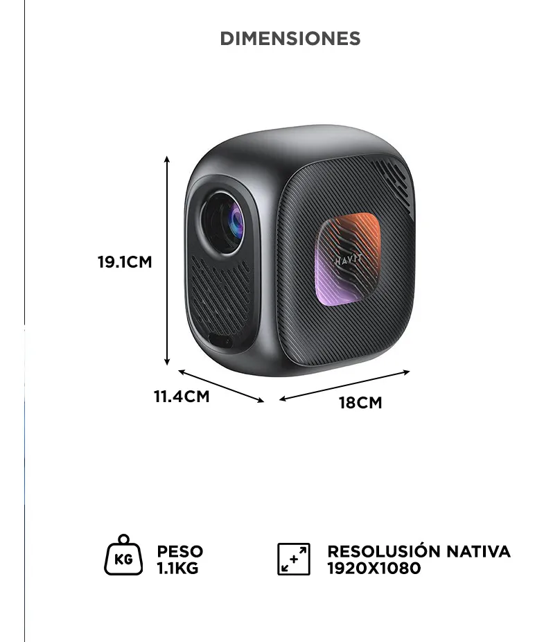 Proyector Inteligente Havit PJ215 Pro 4K 6000 Lúmenes Sumergite en la experiencia cinematográfica con los proyectores Gadnic. ACERCA DE ÉSTE PRODUCTO: Cine en casa con calidad 4K El Havit PJ215 Pro Smart Projector convierte cualquier habitación en un cine. Compatible con resolución 4K y con un brillo de 250 ANSI lúmenes, ofrece imágenes nítidas, colores vibrantes y una experiencia visual inmersiva. Conexión inteligente y rápida Equipado con Android 13 TV y acceso a Netflix, YouTube y más, podés reproducir tus series y películas favoritas sin dispositivos adicionales. Además, su conexión WiFi y Bluetooth te permite sincronizar fácilmente parlantes, auriculares y otros accesorios. Ajuste de imagen en segundos Cuenta con enfoque automático y corrección trapezoidal para ajustar la imagen en pocos segundos. Logra proyecciones de hasta 150 pulgadas con claridad y precisión, ideal para ver deportes, películas o presentaciones. Diseño portátil y práctico Su tamaño compacto y alimentación por USB-C lo hacen fácil de transportar y usar en distintos espacios. Es perfecto para llevar a reuniones, viajes o simplemente disfrutar de una tarde de cine en casa.